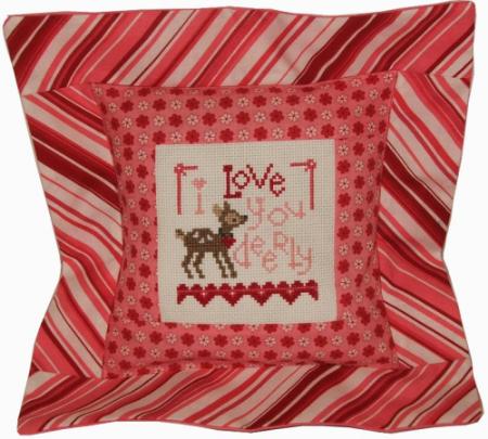 Kit includes pre-sewn 14 count 12" flange pillow sham, floss, needle and instructions.